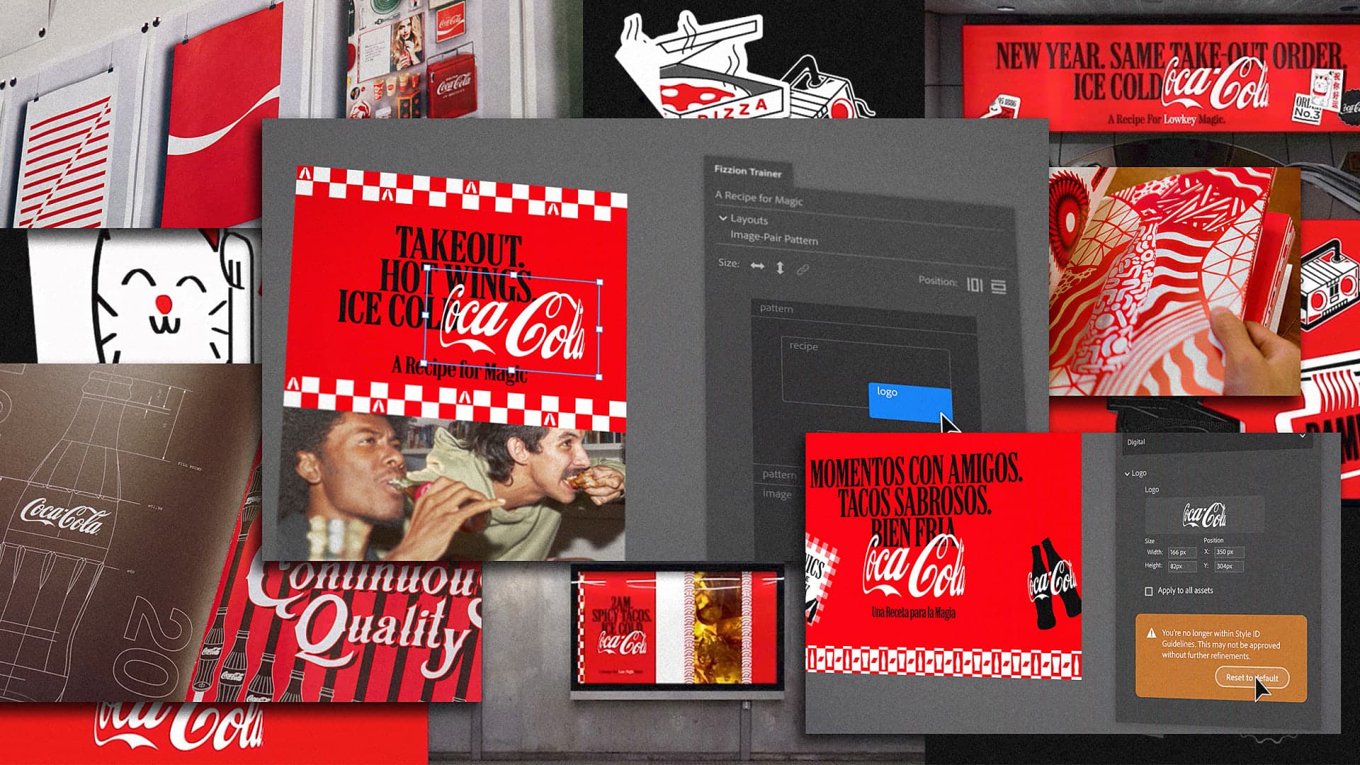 Velocidad con autenticidad. En 2025 el ciclo de vida de una campaña pasó de semanas a horas. Fizzion reduce el time-to-market de ocho a tres semanas y permite iteraciones en tiempo real basadas en social listening, manteniendo el rojo Pantone 484 C y la tipografía Spencerian intactos.