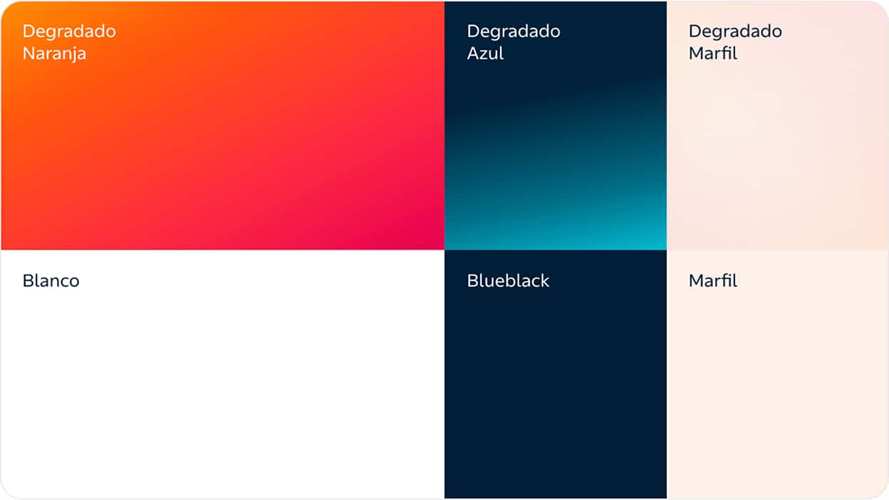 • La paleta cromática: El degradado naranja-magenta es el elemento más simbólico, representando la transición energética del naranja histórico a un magenta futurista. El azul Repsol se mantiene como ancla de confianza y la introducción del marfil como fondo aporta luminosidad y un aire premium, acercando la marca a las empresas tecnológicas.
