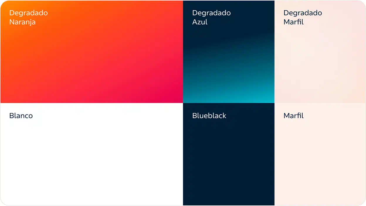 La paleta cromática: El degradado naranja-magenta es el elemento más simbólico, representando la transición energética del naranja histórico a un magenta futurista. El azul Repsol se mantiene como ancla de confianza y la introducción del marfil como fondo aporta luminosidad y un aire premium, acercando la marca a las empresas tecnológicas.
